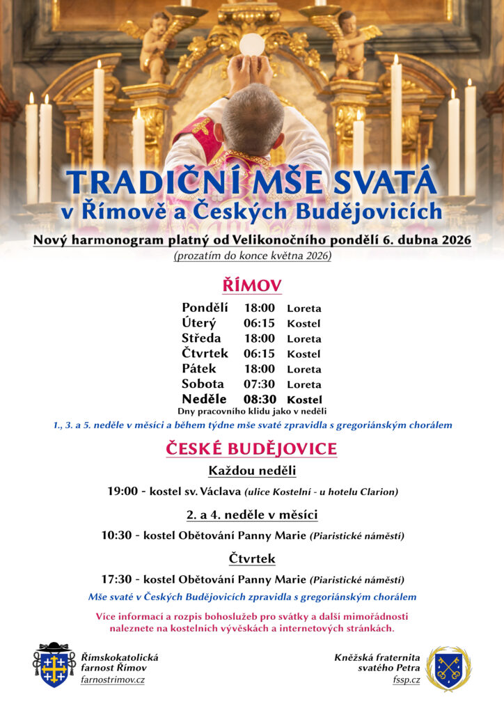 NOVÝ POŘAD BOHOSLUŽEB V ŘÍMOVĚ A V ČESKÝCH BUDĚJOVICÍCH (od 6. dubna 2026)