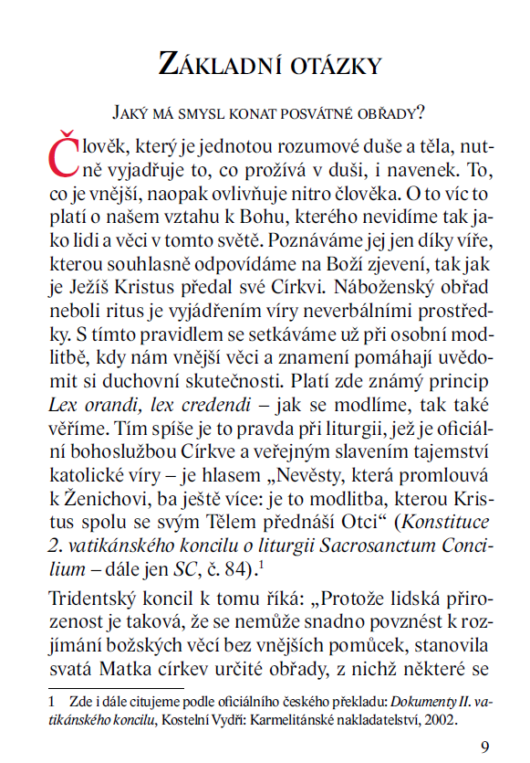 Brožura na křídovém papíře doplněná barvenými ilustracemi na 160 stranách formátu A6 doplňuje Ordo Missae. Je s ním spojena marginálními čísly odkazujícími na jednotlivé části mešního řádu, které jsou krok za krokem vysvětlovány. K zakoupení na místech, kde sloužíme mše svaté, v klášteře Vyšší Brod, v knihkupectví Doron v Českých Budějovicích u Černé věže, v prodejní síti Karmelitánského nakladatelství a také na internetu. Cena 150 Kč.