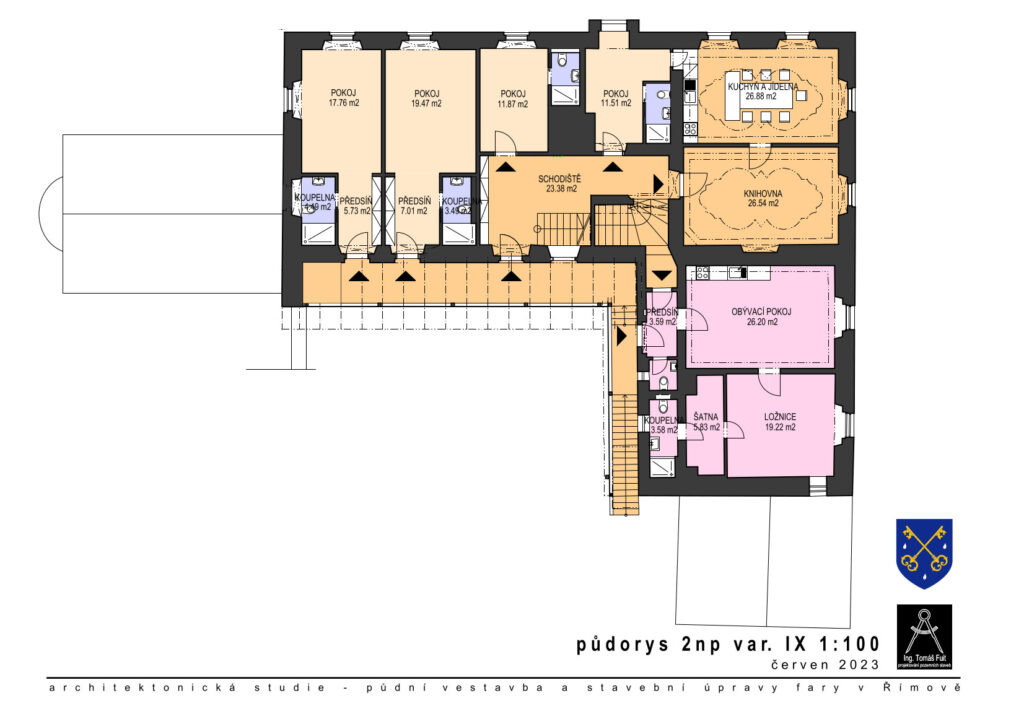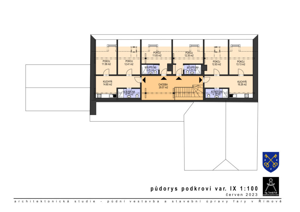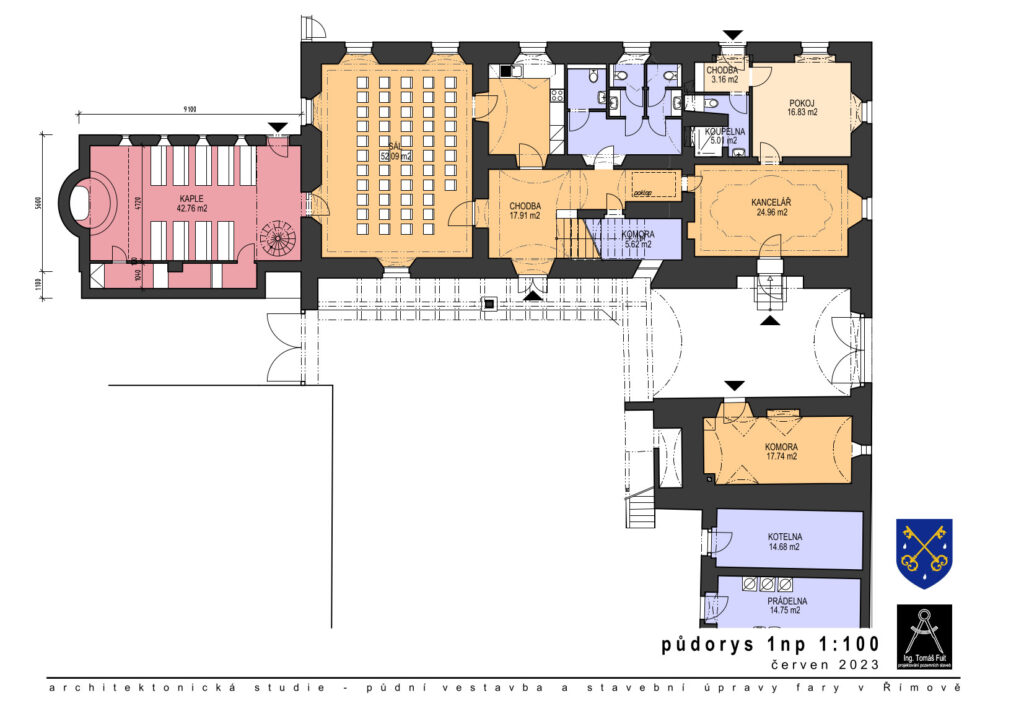 Váš dar si můžete odečíst ze základu daně! Na dárce pamatujeme v modlitbě a při mši svaté. Prosíme také o modlitby za nás. Pán Bůh zaplať! V plánu máme vybudovat sál pro setkávání, rozšíření toalet, byt pro kněze a pokoje pro hosty. V poslední etapě pak přistavíme kapli. Více o projektu na přiložených půdorysech a na webu: https://www.rimov.org/projekt-rekonstrukce/